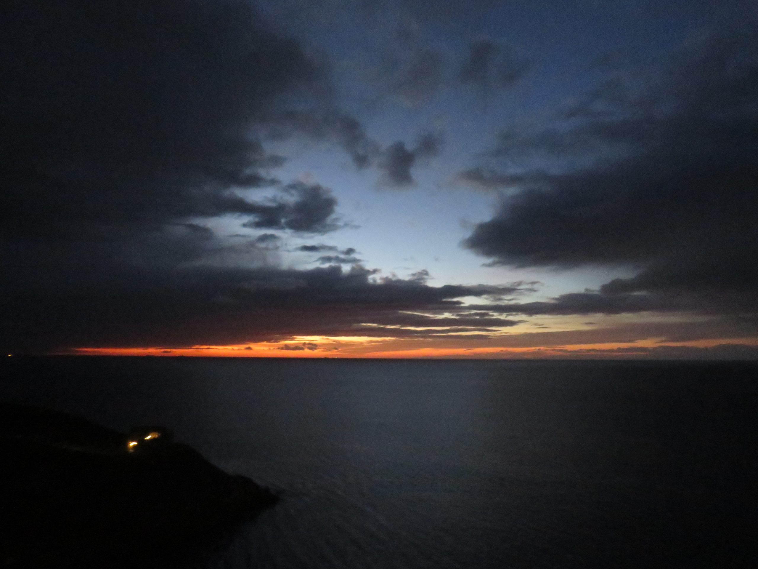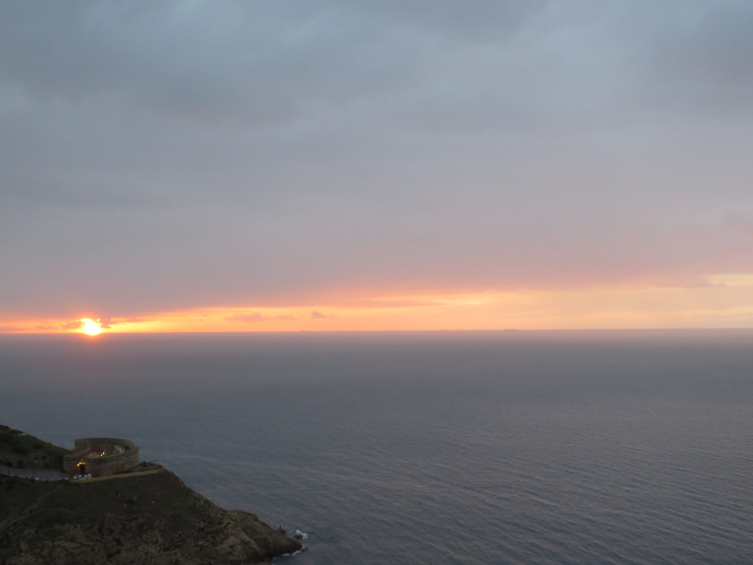 Aprieta la lluvia en los minutos previos a la salida del sol. He podido ver al sol emerger del horizonte y presenciar la tranformación de las nubes en color vino tinto. No obstante, la cortina de lluvia desenfoca la imagen, como si la cámara fotográfica fuera miope.