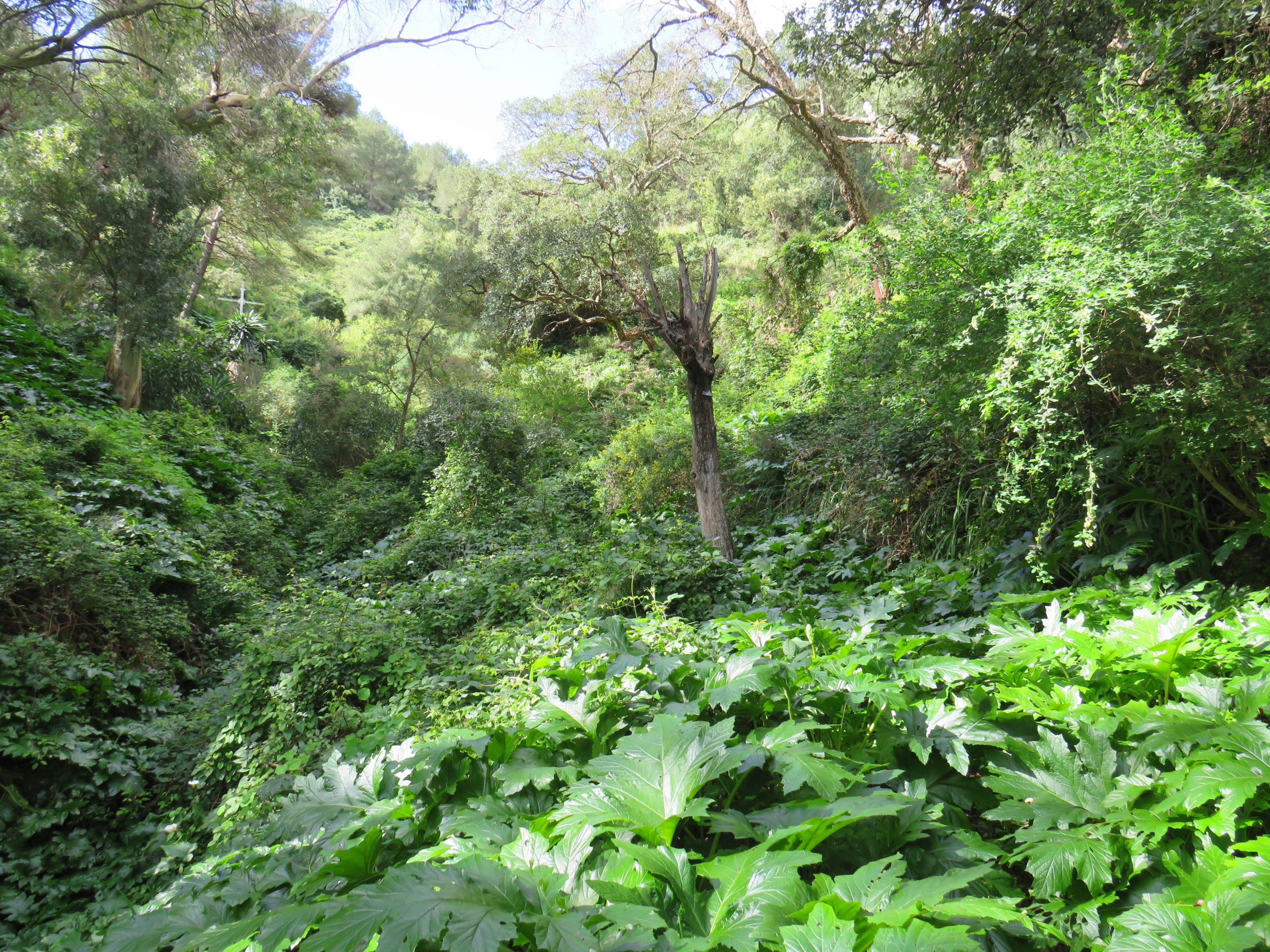 Como de todo hay que procurar sacar algo bueno, el regreso al arroyo ha sido la excusa perfecta para pasear por este bello paraje. Buena parte del recorrido la he hecho bajo la lluvia, no demasiado fuerte, pero lo suficiente para mojarme los pantalones y los zapatos. Aunque, para no faltar a la verdad, el mojado de mis prendas se debe al paso por la floresta mojada y los zapatos se han empapado debido a mi torpeza al atraversar un tramo del arroyo.