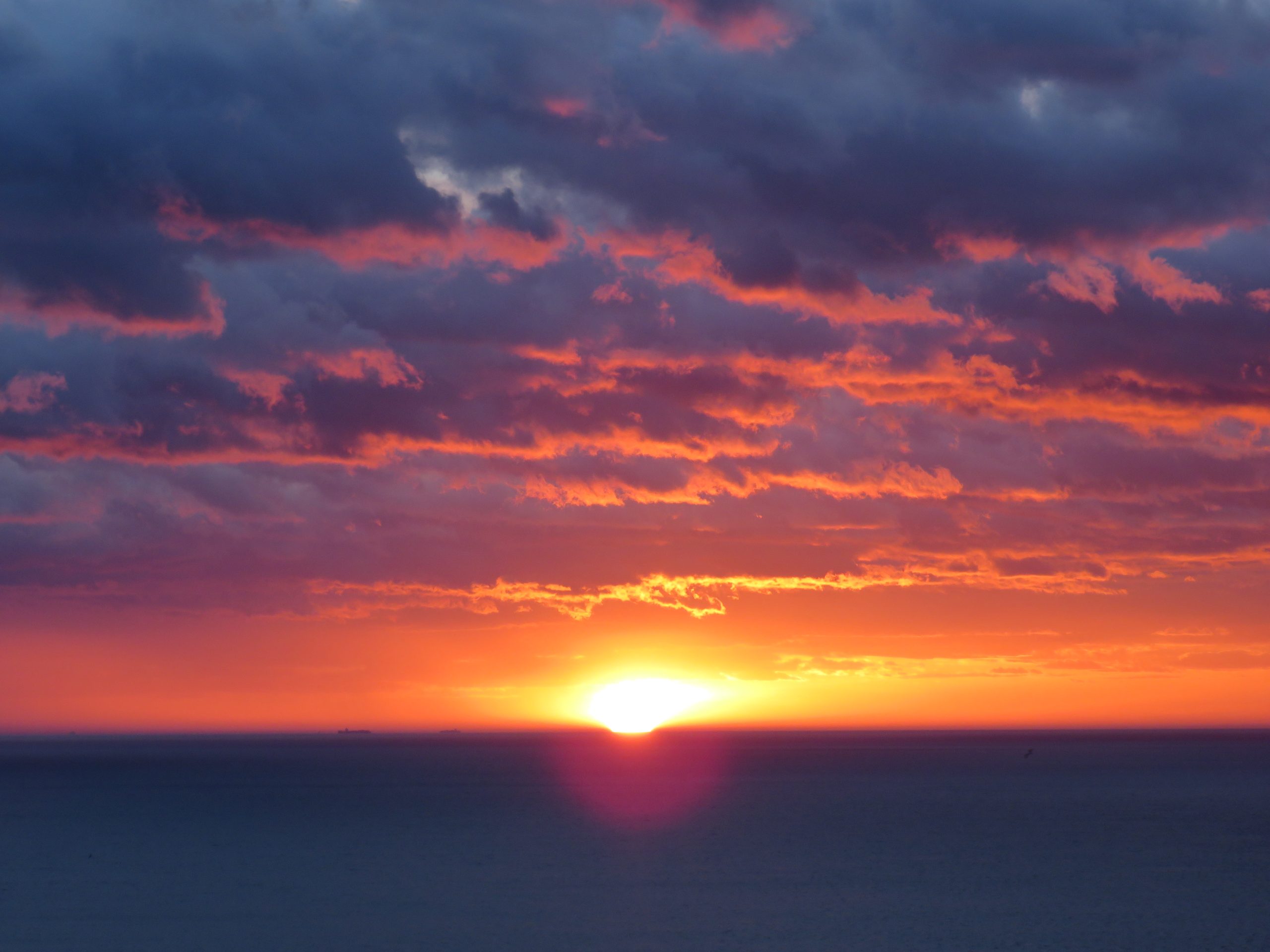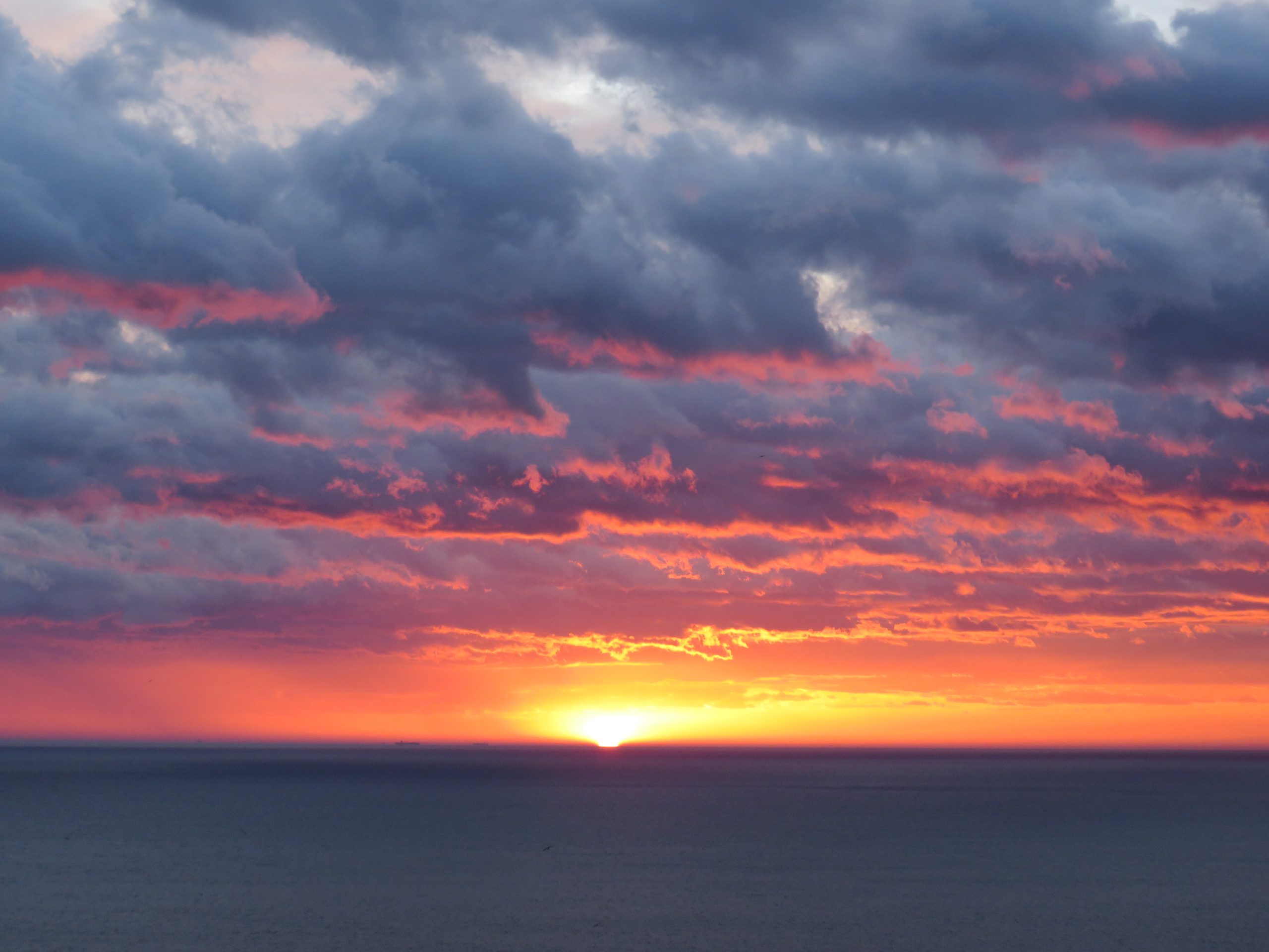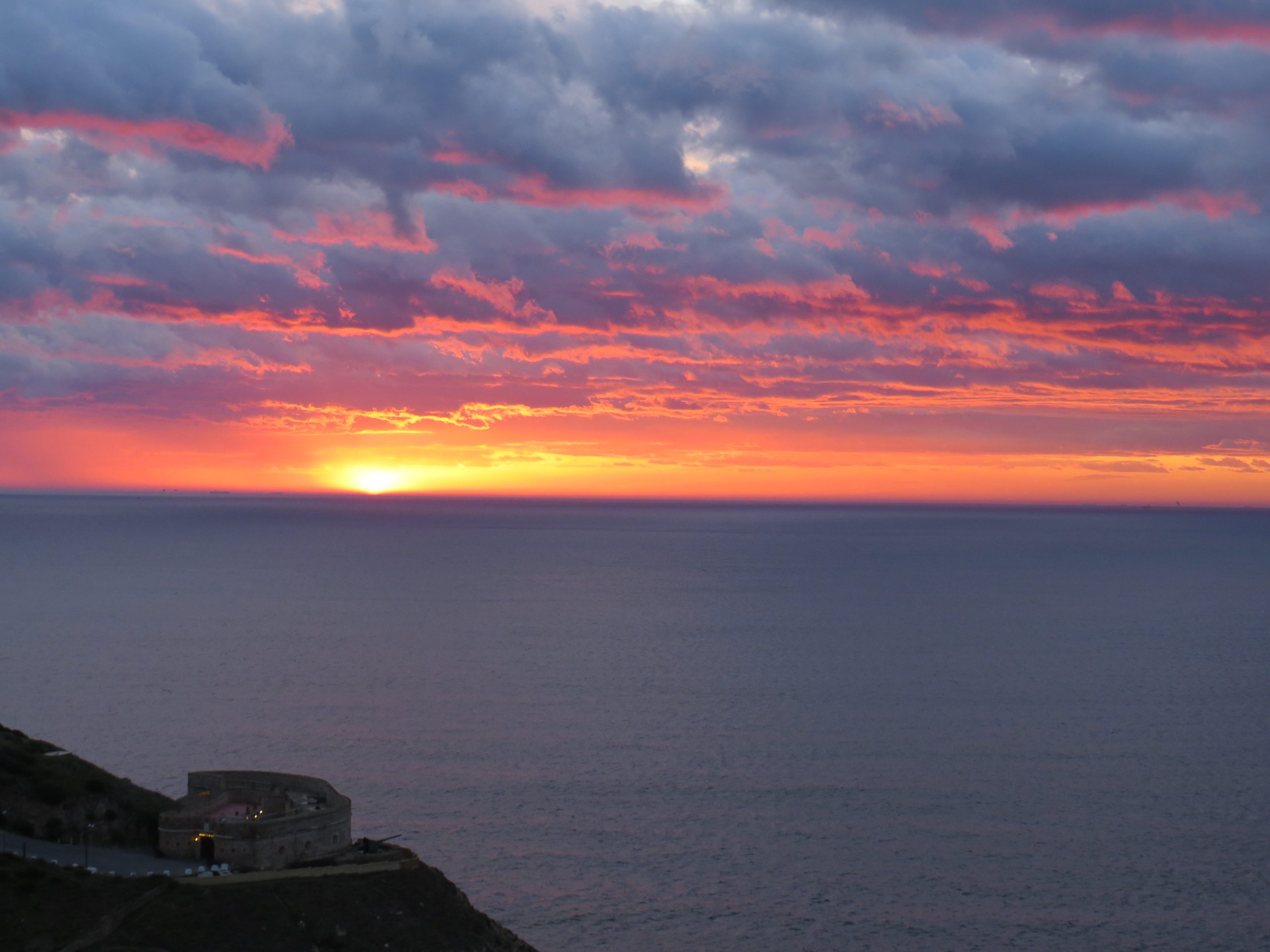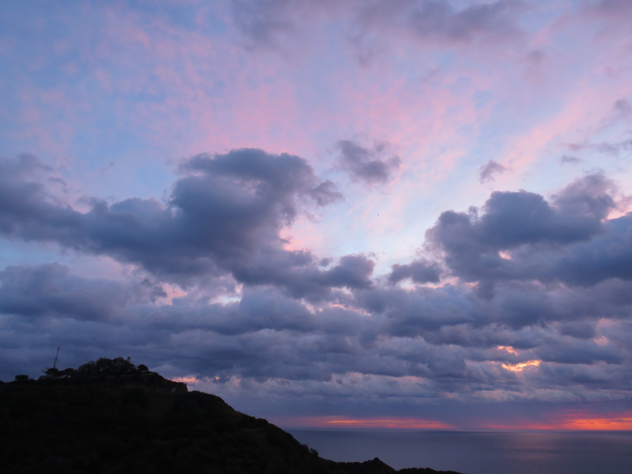 El lienzo se vuelve rosa hasta el mismo cenit tornándose a rojizo minuto a minuto. La composición es de una belleza extraordinaria gracias a las nubes que han absorbido el rojo del alba y lo mantienen durante un tiempo inusualmente extenso que superó la media hora.