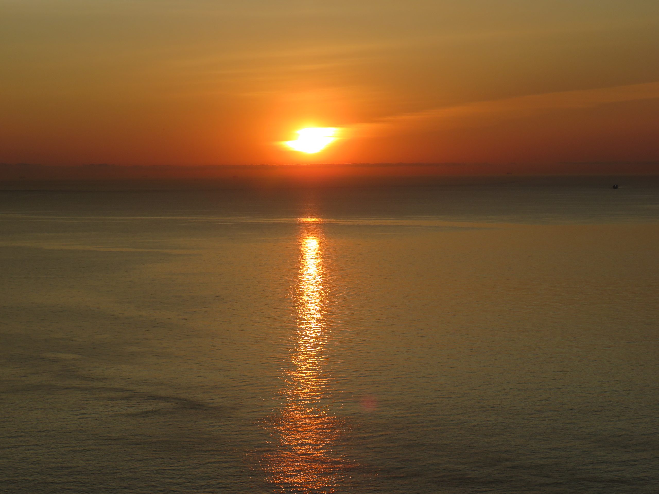 El sol proyectaba un potente haz luminoso vertical y creaba en torno suya una estela rojiza. El mismo sol mostraba su rostro rojo como el hierro fundido y, lentamente, dibujaba sobre una mar una senda dorada.